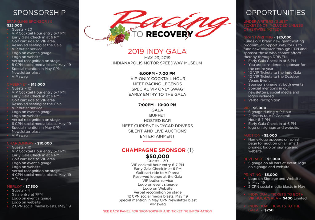 View the brochure handout for Racing to Recovery 2019 Indy Gala:
